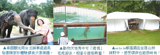 泰國觀光局台北辦事處處長紀綺佳特於10月24~26日率領世興、理想、良友、時報旅遊、協成等業者及媒體,考察中部新景點,短短3天密集造訪綠山國家公園、夜間動物園、紅樹林、週末水上黃昏市場等自然生態與文化體驗主題,而這些景點也同時深受泰國人民及歐美日旅客的喜愛。