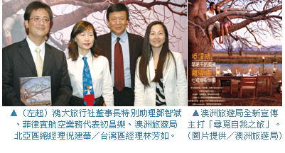 然而,隨著南半球進入晴朗盛夏,澳洲市場也出現六項利多,包括:1、澳幣貶值,從今年初的1澳元兌換近30元新台幣,貶值到目前兌換22元,不僅團費降低,遊客購物就有享受7、8折價格優惠的感受;2、航空燃油附加稅調降,自今年9月至今降幅皆有20~f1 40%;3、澳洲觀光電子簽證免費;4、航線擴增,台灣與澳洲之間原本多家航空公司提供直飛或轉機服務,中華航空更將於明年1月16日起,開闢5班包機直飛凱恩斯,單程航行時間只要7小時,讓台灣旅客可以最快的速度飛抵世界遺產大堡礁;5、《澳大利亞》鉅片助陣;6、各家航空好康大放送。倪建華相信全新宣傳片能為台灣市場注入推廣動力,強烈建議業者趁著諸多助力匯集的時機使勁行銷,引動澳洲旅遊風潮。