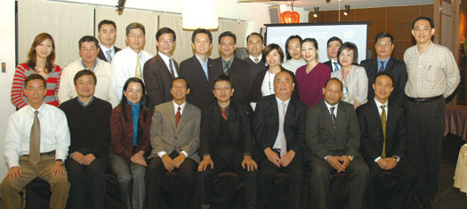 為了感謝一年來ANTOR對於旅遊業的貢獻以及與眾多同業的緊密合作,北市旅行公會於日前特別由2位副理事長許禓哲、丁萊以及公會理事們,宴請外國駐台觀光代表聯合會(ANTOR)成員,丁萊並特別以英文致詞表示感謝並表示,今年台灣旅遊業雖受到景氣不佳的影響,但是相信在同業以及ANTOR成員們的共同努力之下,終能度過此一關卡,也期望明年旅業發展更上層樓,圖前排左4~6分別為外國駐台觀光代表聯合會會長施春庭以及北市旅行公會副理事長許禓哲及丁萊。