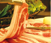 綠茶豬肉的來由為豬在被宰殺之前的一個月,餵食綠茶粉+飼料,其作用在於將脂肪減到最少,品嘗起來較不油膩,1人份約8,000韓元,是一般豬肉的2倍價格。