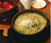 韓國人喜歡在夏天時候吃補,其中蔘雞湯是韓國人在夏季的三伏大熱天裡吃的滋補養身食品,營養非常豐富。韓式蔘雞湯是用砂鍋燉煮,還有一些蔘雞湯店還會免費奉送一杯人蔘酒,除了可直接飲用,店家還建議可以加入湯裡,美味再提升,一人份蔘雞湯約台幣300元左右,還附上美味泡菜、醃蘿蔔等小菜。