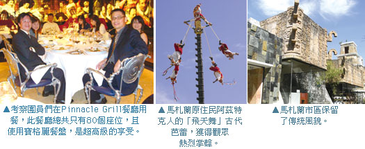 馬札蘭的岸上觀光,可見當地的舊市區傳統風貌,美麗的沙灘、寧靜的小島、悠翔的海鷗和海岸山坡上的燈塔,一覽無遺進入遊客眼簾中,而在市區的黃金地段天主教大教堂,是為親朋好友購買一些紀念品和當地獨特手工藝品的好地方。原住民阿茲特克人露天劇院,能欣賞專業舞者具有濃厚民族色彩的舞蹈,除此之外,Papantla空中飛人特技團在約75英呎高的柱子上表演名為「飛天舞」的古代芭蕾,相當精采。