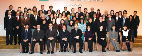 ▲ 來自17個國家和地區、共40多位的旅遊局駐外代表,這次特別前往澳門參加旅遊局年度記者會及中期市場會議,商討20個客源市場在休閒和商務旅遊的推廣宣傳活動。(第一排左3起)澳門特區政府旅遊局副局長白文浩、局長安棟樑、澳門特區政府社會文化司司長崔世安、旅遊局副局長文綺華。
