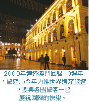 全球市場方面,今年會持續以客源市場多元化及旅遊產品多元化為目標,運用原有資源把澳門打造成為文化之都,設計和推出多條主題旅遊路線,加強與業界的交流合作關係,穩固商務旅遊的發展,提升旅遊環境及服務的品質等。同時,配合澳門回歸10週年,今年將更強化世界遺產旅遊產品,包括開發澳門世遺遊觀光巴士路線、世遺景點駐場專業導遊及旅遊景點的定時定點文藝表演等。