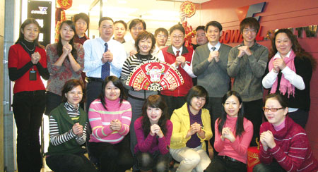 ▲ 科威資訊與台灣旅遊同業攜手共同成長20多年,值此歲末初春,科威資訊將持續秉持服務與創新的精神,與旅遊先進共同迎向新的2009年,回顧2008年科威資訊在旅遊業上下游分銷平台機制上(Travel.net)有不錯的成績,今年計劃由擴大供應商及產品種類、擴大下游用戶、建置同業金流機制等幾個方面推動及改良分銷機制,進一步將計劃整合大陸地區的旅遊相關商品如大陸內陸票、大陸始發國際票、大陸訂房等項目至TRAVEL.NET平台,提供台灣旅遊業者運用,科威資訊總經理蔡麗秋(手持牛頭賀歲道具)與同仁向旅業恭賀新禧。
