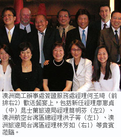 日前舉行的歡送會上,旅遊業者除了依依不捨,也感謝其對業界的貢獻,何經理退休之後的業務,同時,自4月1日起相關業務將由任職於澳洲簽證處13年,深諳各項簽證事務的廖惠貞(Debbie Liao)承接,繼續服務業者赴澳簽證的各項事務;聯絡電話:(02)87254265。