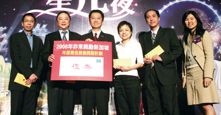 獎勵旅遊交出漂亮成績單,部份可歸功於新加坡展覽及會議署(SECB)於2005年推出BE in Singapore(Business Event in Singapore)獎勵旅遊方案。去年新增的「小團加總獎勵方案」更因符合企業需求於市場上獲得良好反應,而新加坡旅遊局也特別感謝共同協助推廣會議獎勵旅遊表現出色的雄獅、康福、東南、百威及大登等5家旅行社,與新加坡旅遊局攜手在獎勵旅遊市場上,創下亮眼佳績,期望今年能繼續與旅遊同業共同努力,持續推動新加坡獎勵旅遊方案,鼓勵更多企業選擇新加坡作為獎勵旅遊地點。