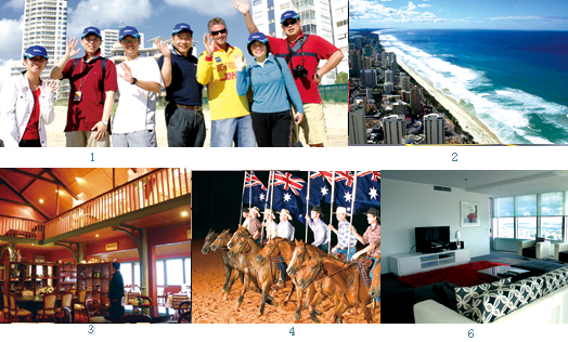 1 台灣業者出席澳洲昆士蘭亞洲業者研討會,參與大會安排的黃金海岸沙灘漫步,並參與衝浪救援俱樂部的解說活動,了解當地水上活動的救援軟硬體設施。(左起)鳳凰旅行社謝淑華、華航台北分公司客運營業部副理李明彥、喜達旅行社經理曾偉繁、鴻大旅行社董事長翁鴻仁、衝浪救援俱樂部人員、理想旅運企劃經理謝德芬、華友旅行社副理武傳祥。