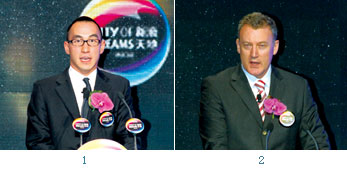 1.新濠博亞娛樂聯席主席兼行政總裁何猷龍。2.新濠天地總裁賀堃。