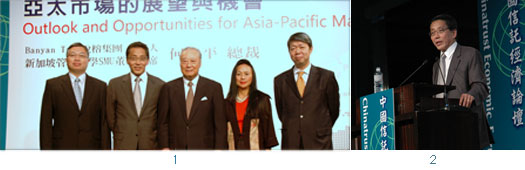 1. 主辦單位中國信託金融控股公司董事長辜濂松(中)與與會貴賓合影。(左起)台灣經濟研究院東南亞所所長黃兆仁、悅榕集團創辦人暨總裁何光平、悅榕全球企業社會基金主席張齊娥、台灣大哥大總經理暨執行長張孝威。