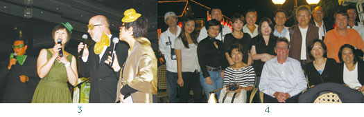 3.澳洲旅遊局的活動以創意聞名,此次洽談會的晚宴表演由澳洲旅遊局合唱團開場,接著由各地的業者共分5個組表演,讓現場更熱鬧非凡。(左起)澳洲旅遊局北亞區總經理倪建華主唱伴奏、大中華區市場傳訊經理魯昭儀╱東半球國際事務行政總經理李澤琛╱中國區首席代表鄧李寶茵等人一起獻唱上海灘。