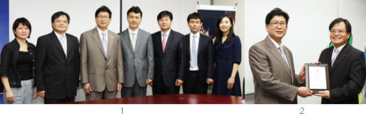 2.台北市政府觀光傳播局主任秘書薛秋火致贈感謝牌給首爾特別市議會財政經濟委員會專門委員林領(左)。