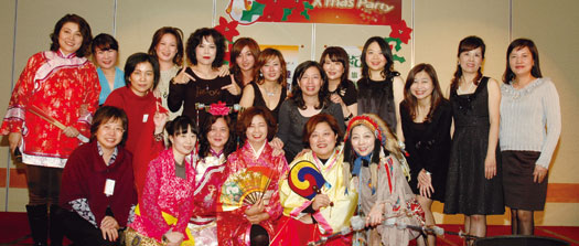 ▲木蘭隊會長王美美(前排右1)率領姊妹們舉辦了盛大的歡樂耶誕晚會。