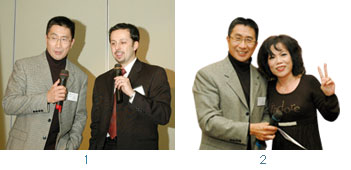 1.雖然有木蘭隊姊妹的精采表演,但紳士們也不能被比下去!美國旅遊推展協會會長張健仁(左)與AIT商務組裴日康特別獻上一曲合唱以饗眾人。