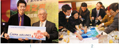 1.華航台灣區處長余劍博致(右)贈雪梨商務艙機票給RBS荷蘭銀行公關部副總經理李以仁。