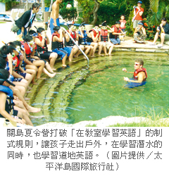 不同的學習需求提供多元化的選擇,其中兼具教學與渡假性質的「2006關島PIC美語夏令營」在五天四夜的活動中,由數十位活動指導員引領著孩子全程使用英語對話,從機場開始,到飯店櫃台、租借器材和五星級西餐廳禮儀,透過實地生活、感受,指導孩子最道地的英語,適合同業推薦給計畫選購遊學產品的家長們。太平洋島國際旅行社總經理雷均則認為,目前包裝關島遊學產品最大的限制是航班問題,所幸今年獲得中華航空大力支持增加加班機,讓操作更為順暢。