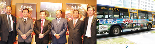 1.(左起)馬來西亞航空總經理特朗斯桑比拉、馬來西亞觀光局台北辦事處處長拿希亞、砂勞越州第一副首長兼旅遊文化部部長兼工業發展部部長及砂勞越旅遊局部長YB Datuk Patinggi Tan Sri Dr. George Chan、砂勞越旅遊局執行長YB Dato' Rashid Khan、飛翼航空公司總經理YB Dato' Salleh Tabrani、飛龍旅行社總經理蕭彥璽。