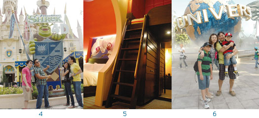 值得一提的是,節慶酒店設定親子家庭為主力客群,不僅室內用色鮮豔活潑,部分房間還設有兒童高架睡床,也因此挑高近4公尺,空間設計帶有實用巧思。而緊鄰的Hard Rock Hotel,住客可體會搖滾明星的生活,並觀賞多位著名巨星的私人吉他,或者可購買搖滾音樂紀念品。至於邁克爾酒店是以聖淘沙名勝世界總規劃者—建築設計師Michael Graves來命名,酒店內收藏其設計的餐具、家具及藝術創作。