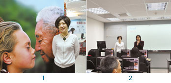 1.紐西蘭旅遊局中國旅業培訓經理陳燕敏,背後是以毛利族「碰鼻禮」為主題的海報。