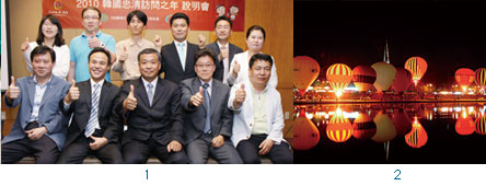 1.(前排左起)韓國觀光公社忠清圈協力團團長李鐘麟、韓國觀光公社台北支社長韓和竣、忠清訪問之年代表團團長池龍煥。