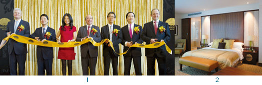 1.(左起)文華東方酒店集團亞洲區營運董事韓竣宇、香港置地集團公司總裁彭耀佳、譚燕玉、澳門特別行政區政府旅遊局長安棟樑、信德集團執行董事岑康權、香港置地集團公司執行董事周明祖、澳門文華東方酒店總經理Martin Schnider一同參與剪綵儀式。