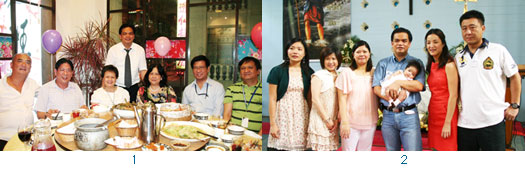 1.菲律賓觀光部台灣分處處長雷亞司(後排站立者)生日晚宴上,(坐者左起)北市公會副理事長丁萊、菲律賓駐台代表處代表白熙禮╱財務總監Santos Araceli╱副代表費德琳╱勞工事務主任Reydeluz D. Conferido╱勞工事務副主任Jose C. Capa等重要貴賓出席。