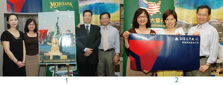 1.網路票選抽獎於8╱31假達美航空在業者的見證下抽出,(前排左2起)美國蒙大拿州政府亞太區辦事處經理林佳慧與達美航空台灣分公司台灣區客運部行銷業務經理曹琪。