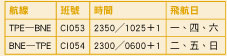 ●台北—布里斯本航班時刻: