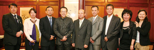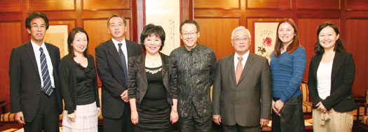 ▲(左起)飛鳥國際旅行社所長賴建國、唯客樂旅行社副總經理官亭利、大興旅行社總經理林大興、星野集團總裁星野佳路、五福旅行社總經理陳一宏、大榮旅行社協理陳慶隆、康福旅行社副總經理李清利、太平洋島國際旅行社執行長湯桂禎、星野集團海外市場戰略事業部經理泉谷晴香。