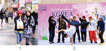 1.韓國購物優惠季的活動,讓許多專程到韓國血拚的民眾省下不少荷包。2.在韓國購物優惠季的開幕活動上,主辦單位除了舉辦抽獎活動,還邀請到B-boy到現場展現高難度的街舞表演。