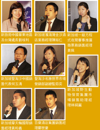 為了協助台灣業者了解2011年新加坡旅遊局的推廣計畫,以及接下來還有那些新設施即將登場,新旅局特別於2月底在台北、高雄舉辦盛大的說明會及交易會,邀請到新加坡當地共16家業者來台,讓有意包裝新加坡的業者,在說明會後即可直接與當地飯店、景區、旅行社、航空公司進行一對一洽談,新旅局中國華東地區及台灣處長的劉埃利也親自來台,與同業進行交流。