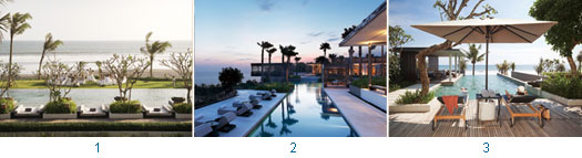 1.Alila在今年特別要向台灣市場推薦他們的婚禮企劃,客製化的安排與絕美的景觀吸引名媛孫芸芸的母親何念慈特別到Alila Villas Uluwatu在此舉辦浪漫婚禮(圖為Alila Villas Soori照片)。2.Alila Villas Uluwatu以簡約、低調的設計蘊含著頂級Villa住宿的奢華享受,在2010年獲得許多國際獎項的肯定。3.Alila Villas Soori就坐落在海灘旁,讓你隨時都可以擁抱沙灘,或是轉身回到私人別墅享受隱密的優閒時光。