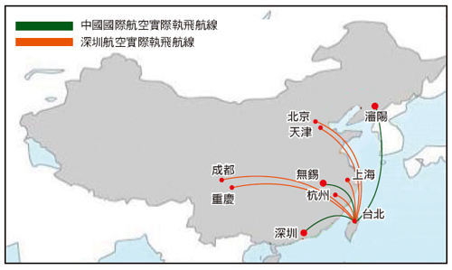 中國國際航空台灣分公司銷售經理張尤金表示,國航最初在設立航點與航線布局時,目標明確以優勢航線為主要擴充,不求廣泛開設航點,但是在每個航點上都要佔有一定優勢,因此國航集中投入在華北(北京、天津)、西南(成都、重慶)、華東(杭州、上海)3個區塊,布局大量航班,在這些一級航線上,國航的市場佔有率均勢非一即二。