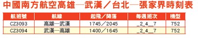 中國南方航空將於4/15開通「台北─張家界」、4/2「高雄─武漢」。在2012年,湖南共吸引了53.93萬人次旅客赴湖南觀光,而湖南則有8萬人次旅客來台觀光,在直航後的雙向交流更是上看破百萬人次。受到電影《阿凡達》的影響,「張家界」已經成為一年四季熱銷的旅遊產品,相信透過南航開通張家界、搭配既有的長沙航點,將再創新旅遊路線。
