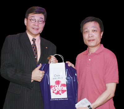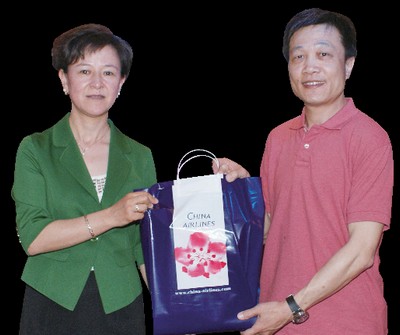 ▲(左起)新疆維吾爾自治區旅遊局副局長古麗.阿不力木、華航台北分公司客運營業部大陸線主任鄧程智。