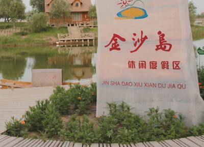 金沙島度假區休閒集團利用當地草原、湖泊與濕地地形,建構占地面積達22平方公里、水域達1萬畝的綜合度假區,區內設有2人、3人、多人房不等的小木屋共36棟。區內種植各式花卉,期望能打造成另一「中國普羅旺斯」。