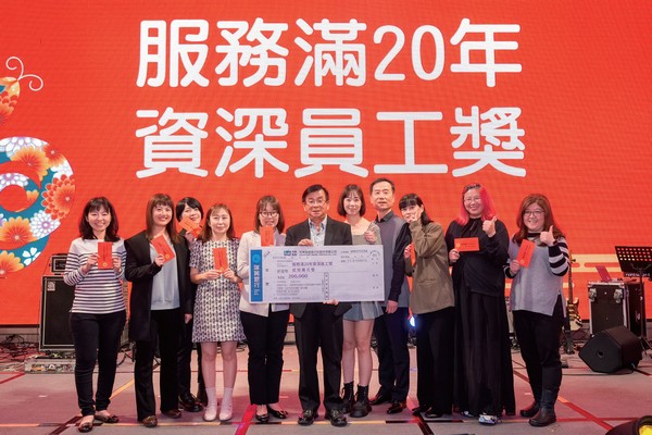 ▲服務滿20年之久任員工獲得20萬元現金支票表揚。
