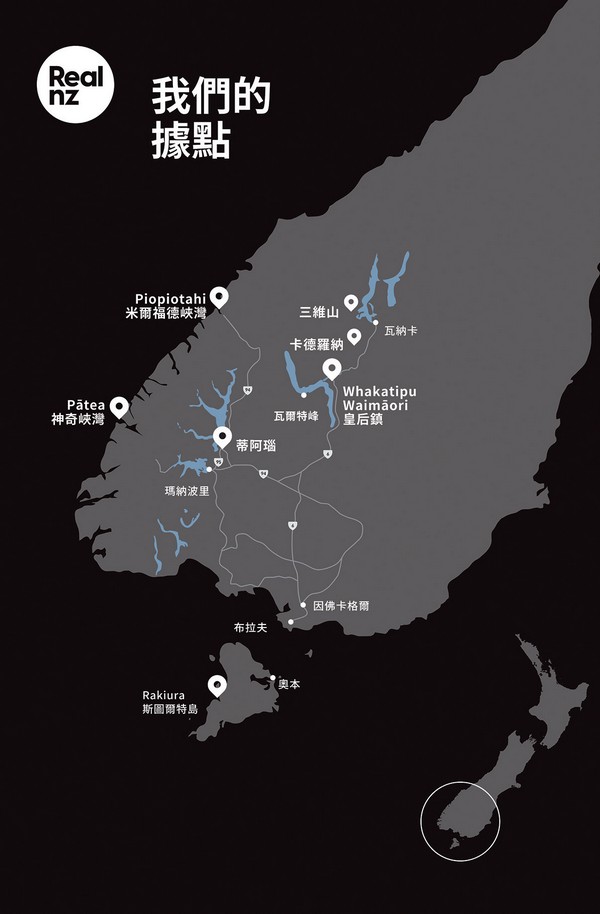 於1954年創立、以南島為基地的RealNZ,是紐西蘭最具代表性的紐西蘭景區與雪場集團之一,該公司致力將最真實的紐西蘭呈現給旅客,從米佛峽灣的遊船、觀光飛機、蒂阿納螢火蟲洞、皇后鎮百年蒸汽船,到卡德羅娜滑雪場等任君挑選。