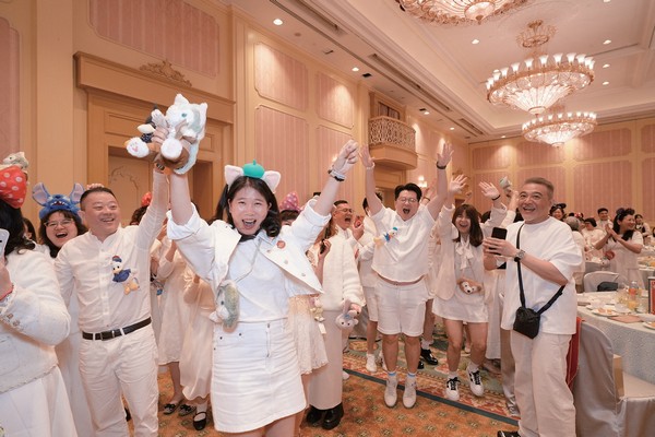 隔日則迎來重頭戲「百萬菁英會」,地點選在香港迪士尼樂園酒店的仙杜瑞拉宴會廳。今年活動以純白色系搭配迪士尼元素為主題,現場準備各式迪士尼造型甜點,並設置擺滿迪士尼周邊商品的夾娃娃機,讓同仁挑戰手氣,把可愛的迪士尼玩偶帶回家。