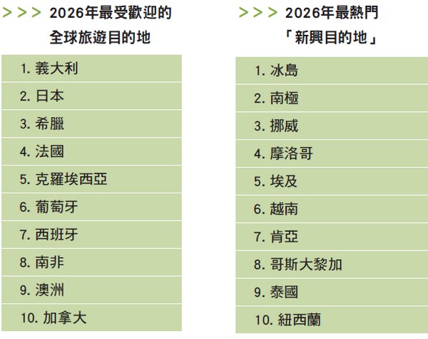 這份蒐集來自50多個國家、超過2,400名頂尖旅遊顧問的年度報告,也成為產業界觀察2026年全球高端旅遊走向的重要風向球。