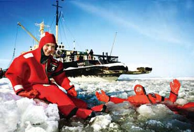 全球獨有的芬蘭凱米破冰船─ 「三寶號」( S A M P O ) 是全球現時唯一的觀光破冰船,至今載客已有40多年歷史。該船長75公尺,重3,540噸的破冰船。在破冰船前進時,船身重量將壓碎厚達2公尺的冰層,並利用「圓刀」(船底圓刀型設計)割開大塊碎冰。搭乘時,旅客將聽到船身與冰層撞擊所發出的巨響,讓旅客體驗畢生難忘的旅程。另外,團員也有機會穿上特製全身防水保暖橡皮衣,體驗浮沉在極凍冰海上。