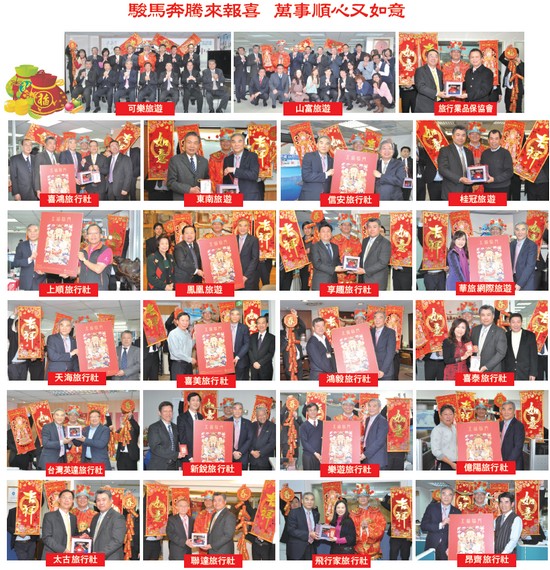 華航拜年團聲勢浩大,並以「駿馬奔騰來報喜、萬事順心又如意;歡歡喜喜迎馬年、喜氣財神祝福你」為口號,祝福業者在馬年的業績長紅。此外,華航也維持一貫傳統,向每一家旅行社獻上1張財神海報,並贈送春酒、春茶。羅皓明在祝賀同業新春愉快之際,也感謝同業長期支持,盼在今年能夠攜手同業齊心創雙贏。