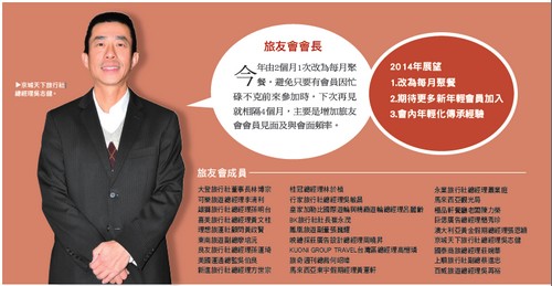 已成立10年的旅友會,今年即將邁入第11個年頭,創立旅友會會長即大登旅行社董事長林博宗表示,當時設立的宗旨為冀望同業間除了彼此競爭,私下也能有良好的互動、化敵為友,關鍵在於利用旅友會平台,多交流避免削價之惡性競爭,如此一來,更能提升台灣Outbound整體觀光品質。