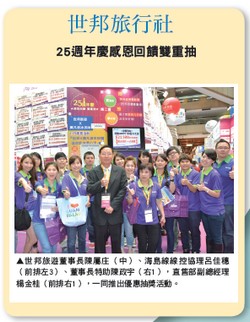 ▲(前排左起)泰國觀光局台北辦事處處長商頌、台北市商圈產業聯合會理事長周水美、旅行公會總會榮譽理事長姚大光、中華航空台灣地區處長兼台北分公司總經理羅皓明、台北市觀光傳播局副局長邱蓬新、外交部領事事務局局長龔中誠、客家委員會主任委員黃玉振、副總統吳敦義、旅行公會總會理事長許禓哲、交通部觀光局副局長張錫聰、行政院原住民族委員會主任委員林江義、ANTOR會長暨菲律賓觀光部處長雷亞司、日本航空台北營業處旅客業務部部長筈見昭夫、長榮航空客運本部副總經理張建滄、一般社團法人事務局長廣野研一、觀光領隊協會理事長劉文義。