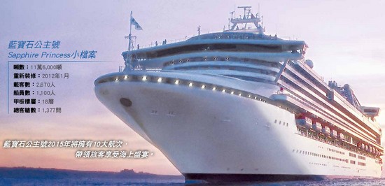 藍寶石公主號將於服役完新加坡航程後,進行為期1個月的重新裝修,而重新亮相的藍寶石公主號,將率先服務於台灣市場自2015╱4╱27 起的包船行程。