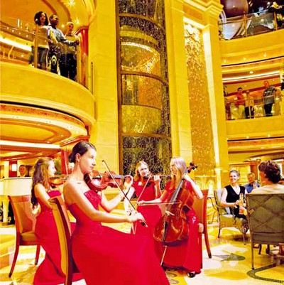 旅客可前往7星級公主劇院,上演媲美紐約百老匯的歌舞表演,3層樓高、可容納700人的氣勢空間,給旅客無與倫比的聲光享受;而天行者夜總會,擁有5大洋上最棒景觀的舞廳,在跳舞的同時,也能陶醉在360度的浪漫景致之中。