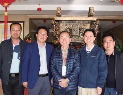 ▲(左起)寧夏回族自治區旅遊局旅遊促進處副處長劉光輝、寧夏固原市旅遊局局長任立新、台灣高校教師寧夏絲綢之路參訪團團長李銘輝、海旅會台北辦事處副主任孔倫、寧夏固原市旅遊局副局長王周。