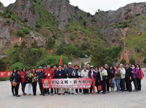 ▲台灣高校教師寧夏絲綢之路參訪團於黃河大峽谷景區的大禹文化園合影。