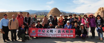 ▲ 台灣高校教師寧夏絲綢之路參訪團於西夏王陵合影。