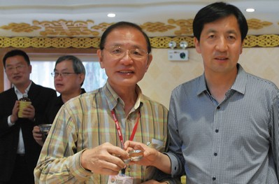 ▲(右起)通湖草原旅遊區董事長暨沙坡頭景區總經理韓忠勝、台灣高校教師寧夏絲綢之路參訪團團長李銘輝。